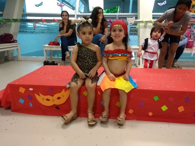 Nos dias anteriores ao Baile Infantil teve festa de Carnaval na Musculação, nas turmas de Natação Adulto e Hidroginástica e Pilates.
