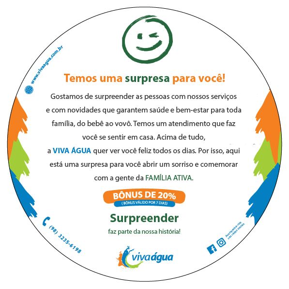 A Viva Água presenteou os participantes com um bônus que garante direito de desconto de 20% em atividades na Viva Água. Contato pelo fone (98) 3235-6198.